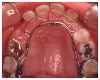 舌側弧線装置主に小児矯正の時使用し裏側からバネの力で咬みあわせをなおしたり、歯の並ぶスペースを確保したりする装置です。
