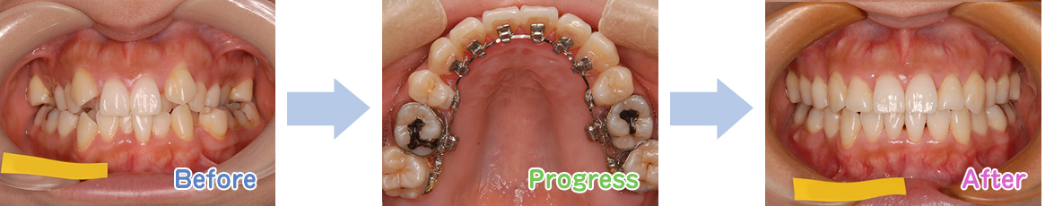 抜歯部位:上顎両側第一小臼歯、下顎左側第二小臼歯
